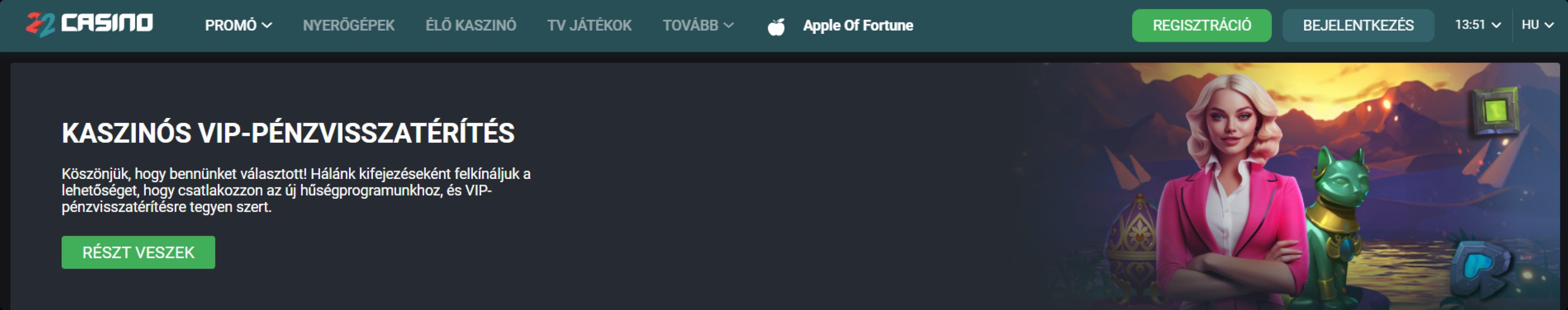 22Casino VIP program – Játssz komolyan, kapj különleges bánásmódot